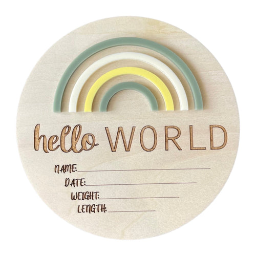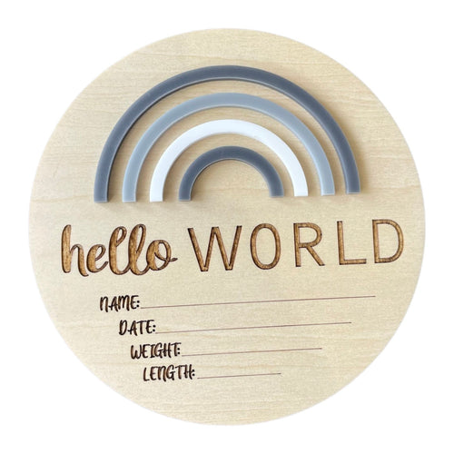 Hello World! Rainbow Rainbow Greys birth announcement disc by Timber Tinkers
